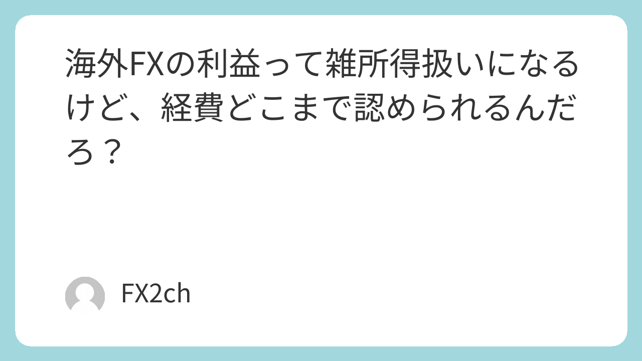 海外FXの利益って雑所得扱いになるけど、経費どこまで認められるんだろ?