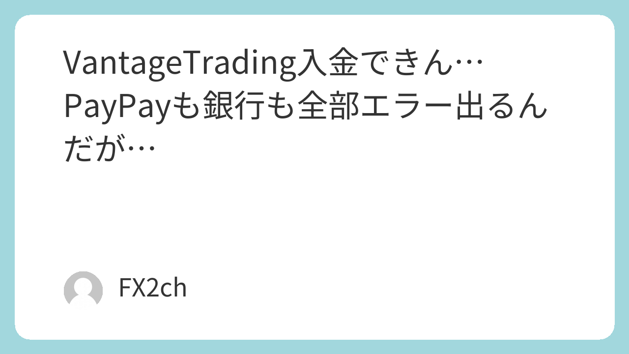 VantageTrading入金できん…PayPayも銀行も全部エラー出るんだが…