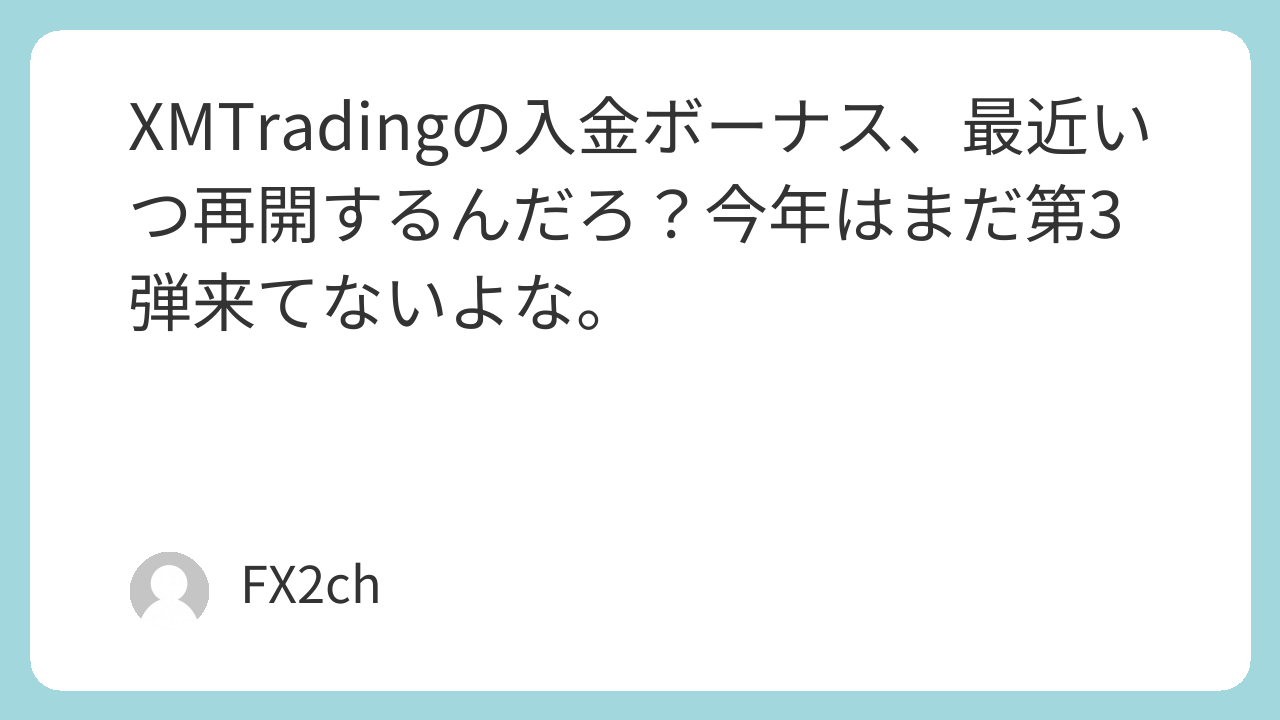 XMTradingの入金ボーナス、最近いつ再開するんだろ?今年はまだ第3弾来てないよな。