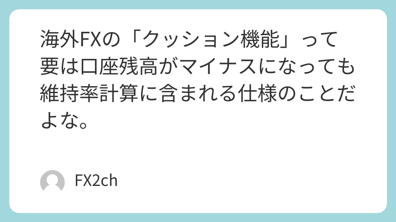海外FXの「クッション機能」って要は口座残高がマイナスになっても維持率計算に含まれる仕様のことだよな。