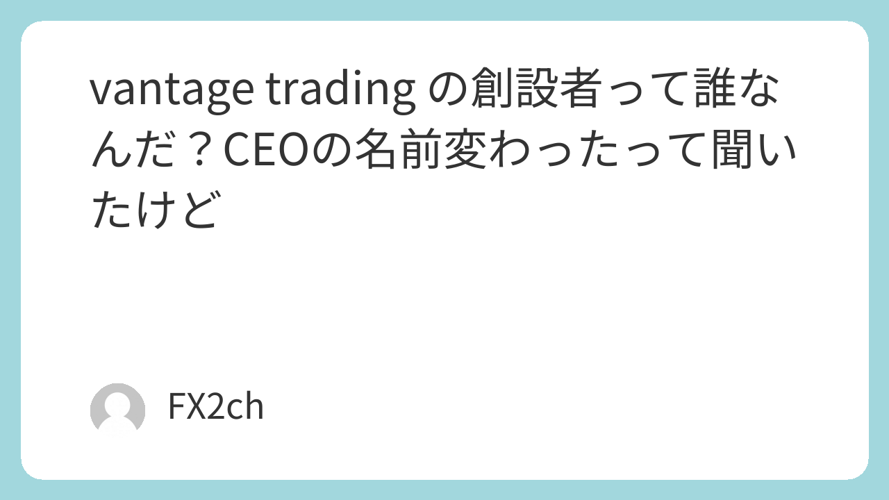 vantage trading の創設者って誰なんだ?CEOの名前変わったって聞いたけど