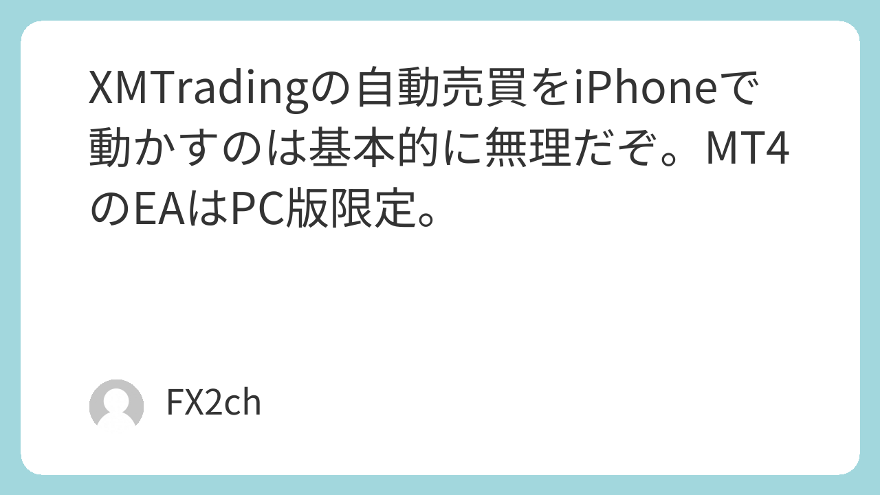 XMTradingのMT4アプリ、通知とかは便利だけど自動売買は未対応なんだよね。
