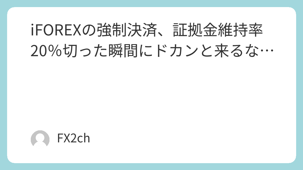 iFOREXの強制決済、証拠金維持率20%切った瞬間にドカンと来るな…