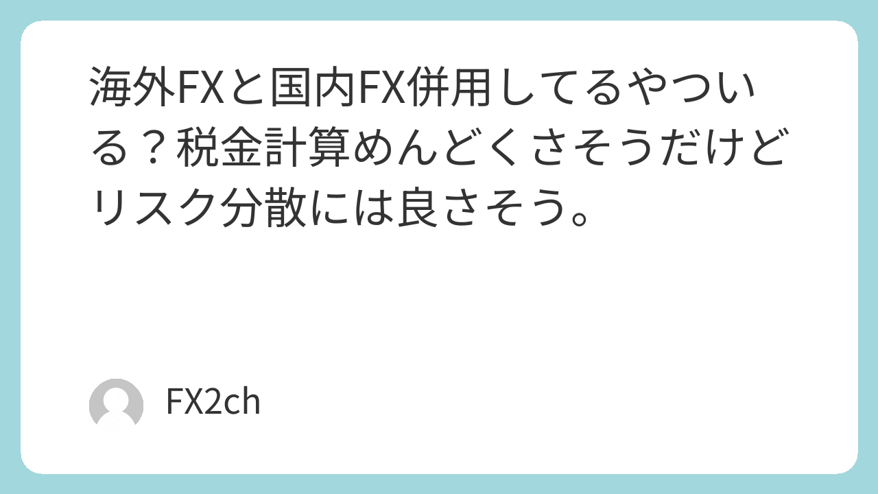 海外FXと国内FX併用してるやついる?税金計算めんどくさそうだけどリスク分散には良さそう。