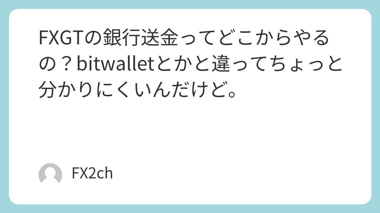 FXGTの銀行送金ってどこからやるの?bitwalletとかと違ってちょっと分かりにくいんだけど。