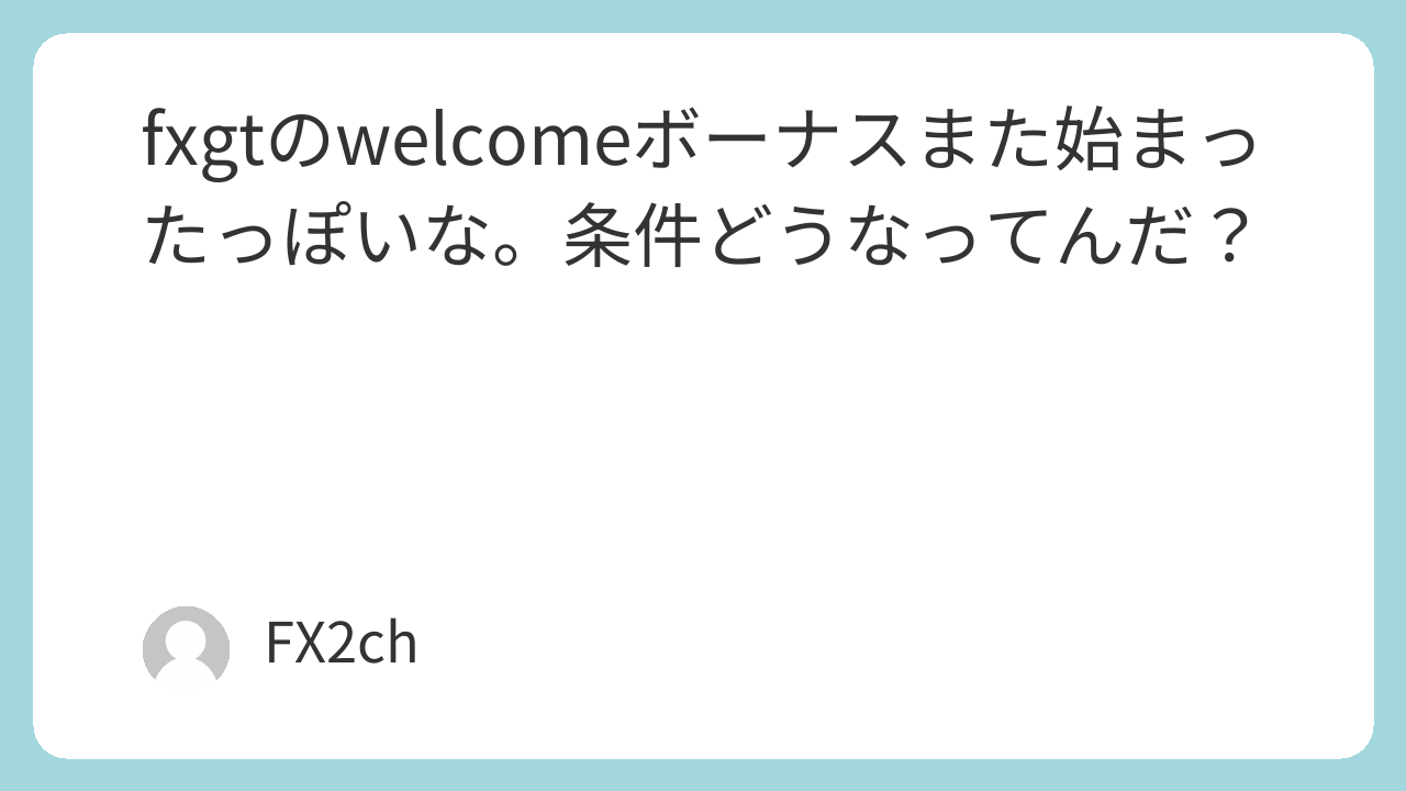 fxgtのwelcomeボーナスまた始まったっぽいな。条件どうなってんだ?