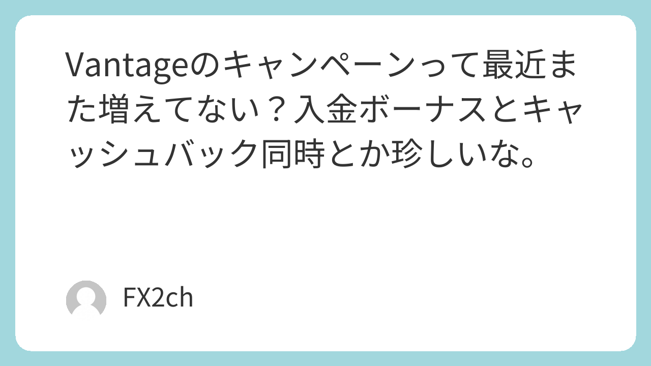 Vantageのキャンペーンって最近また増えてない?入金ボーナスとキャッシュバック同時とか珍しいな。