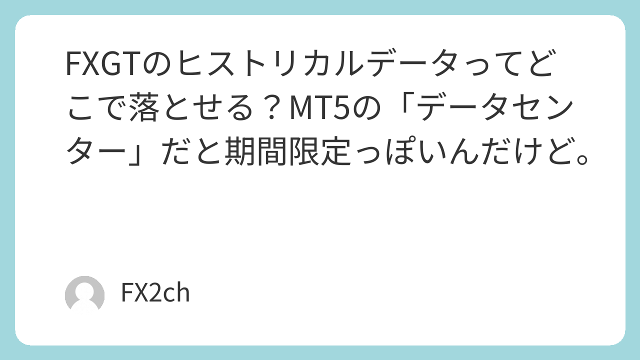 FXGTのヒストリカルデータってどこで落とせる?MT5の「データセンター」だと期間限定っぽいんだけど。