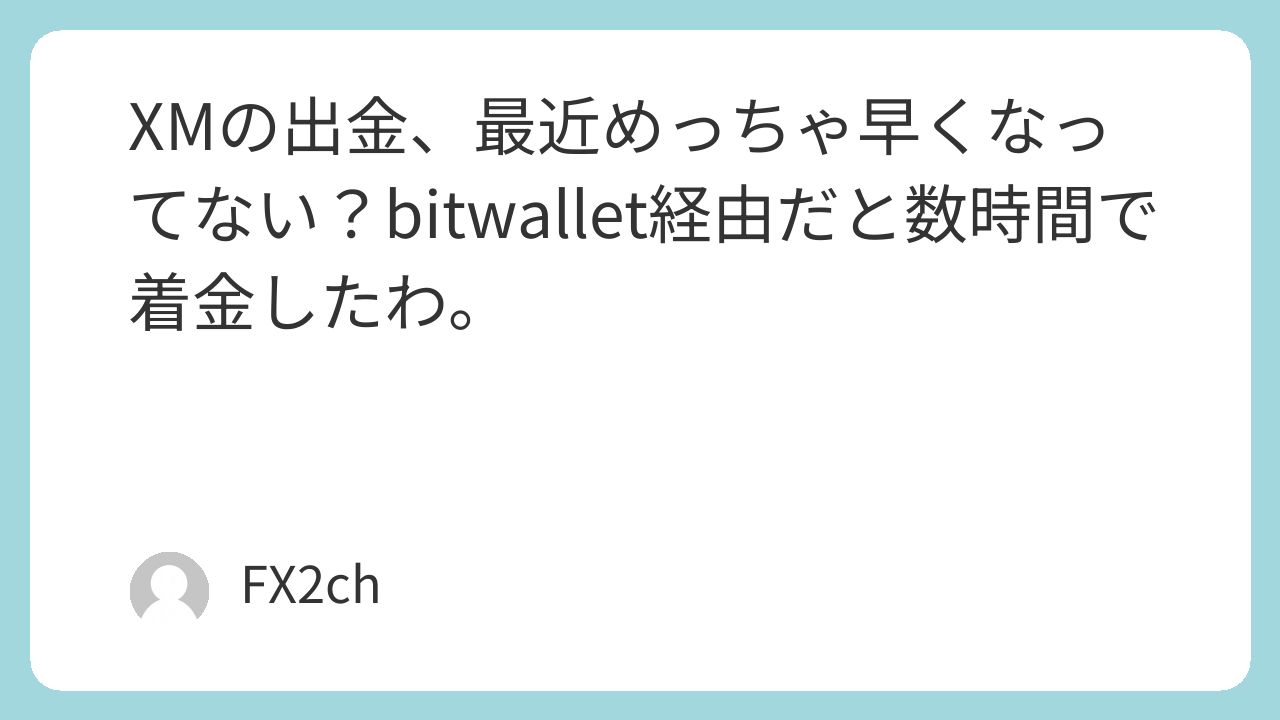 XMの出金、最近めっちゃ早くなってない?bitwallet経由だと数時間で着金したわ。