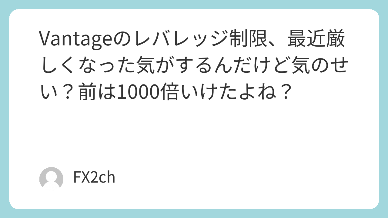 Vantageのレバレッジ制限、最近厳しくなった気がするんだけど気のせい?前は1000倍いけたよね?