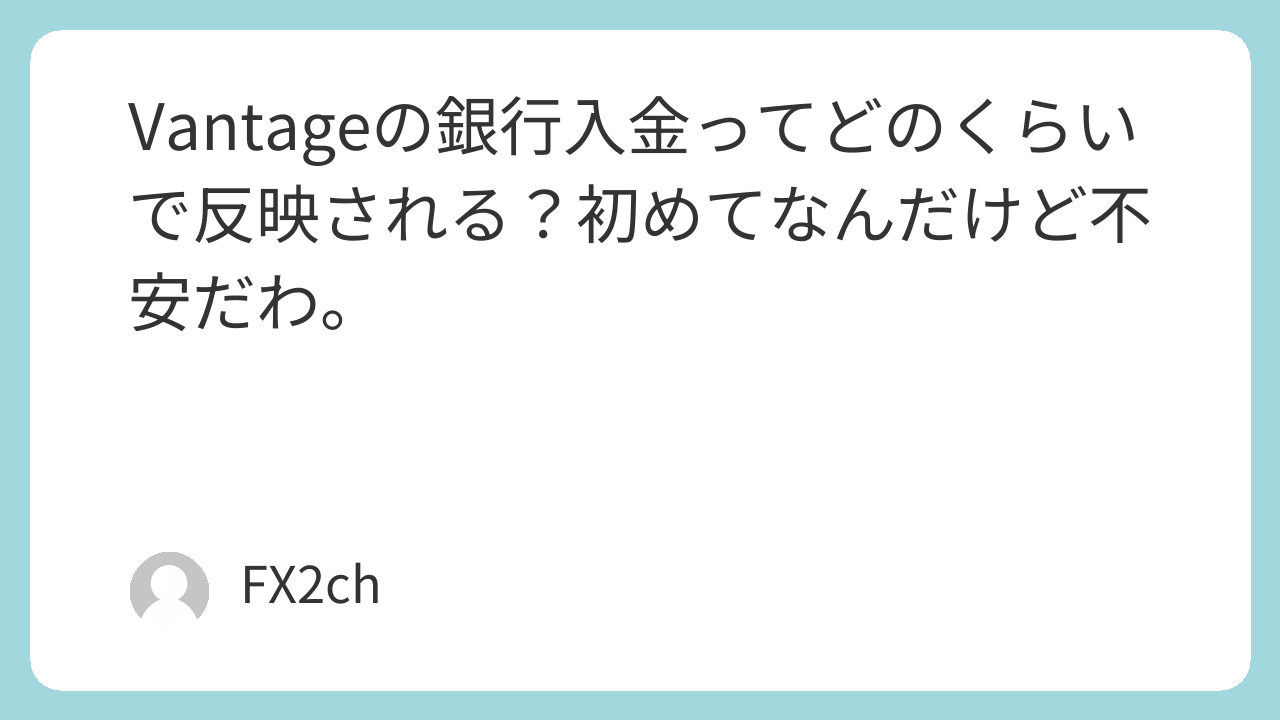 Vantageの銀行入金ってどのくらいで反映される?初めてなんだけど不安だわ。