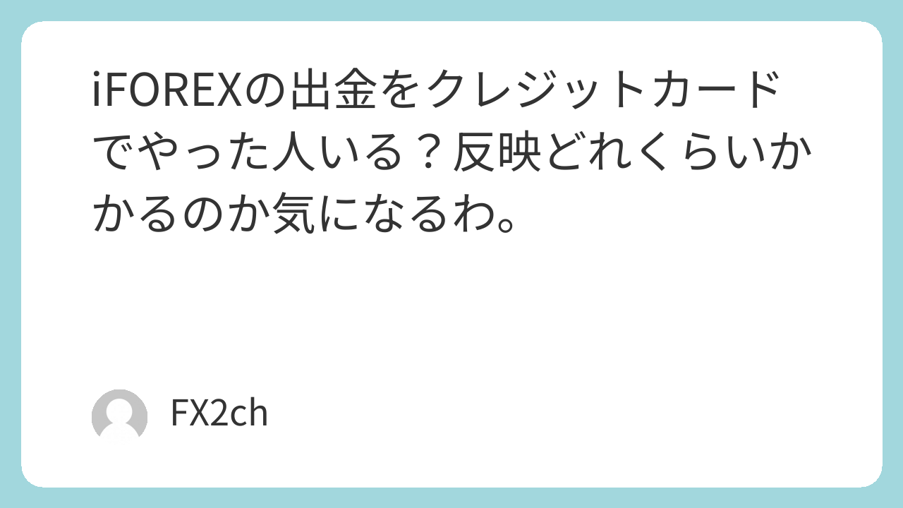 iFOREXの出金をクレジットカードでやった人いる?反映どれくらいかかるのか気になるわ。
