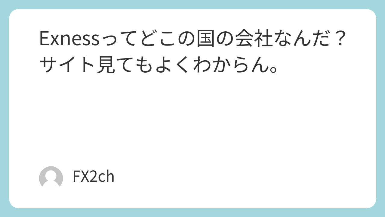 一応、Exness Group自体は多国籍体制だから、単一国に限定しにくいな。