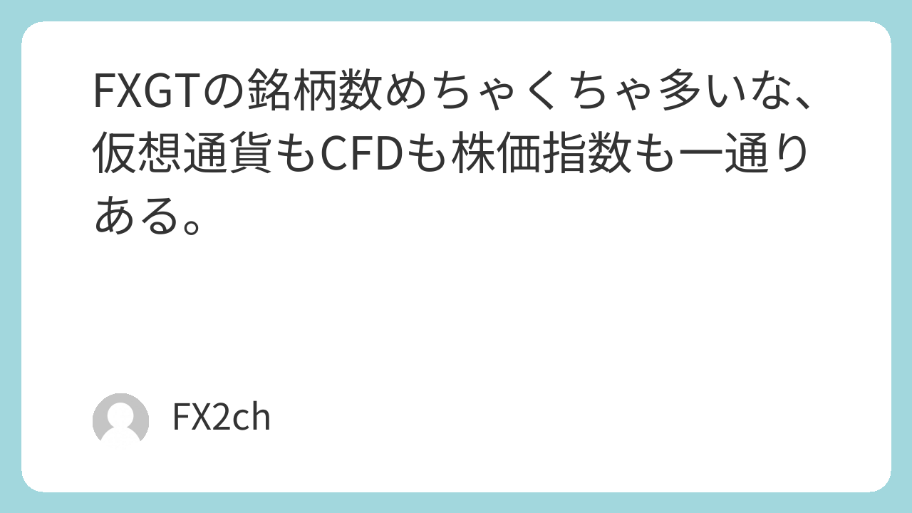 FXGTの銘柄数めちゃくちゃ多いな、仮想通貨もCFDも株価指数も一通りある。