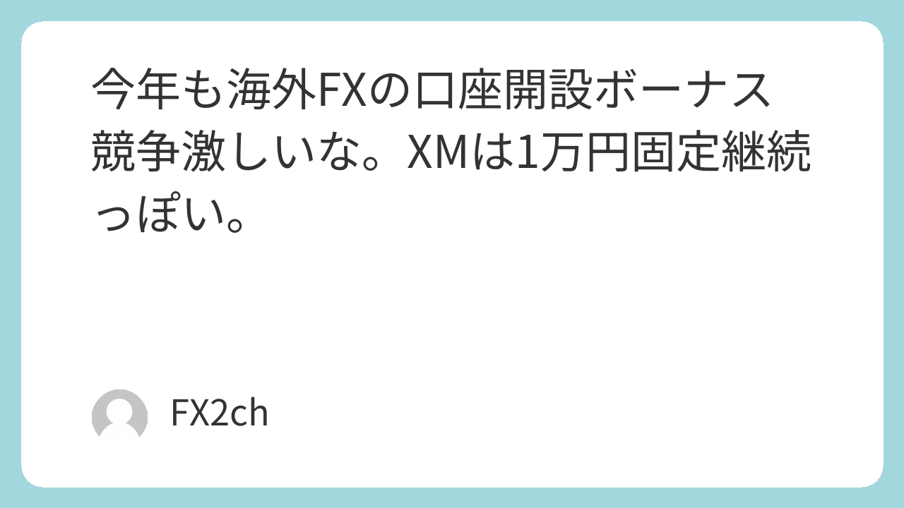 今年も海外FXの口座開設ボーナス競争激しいな。XMは1万円固定継続っぽい。