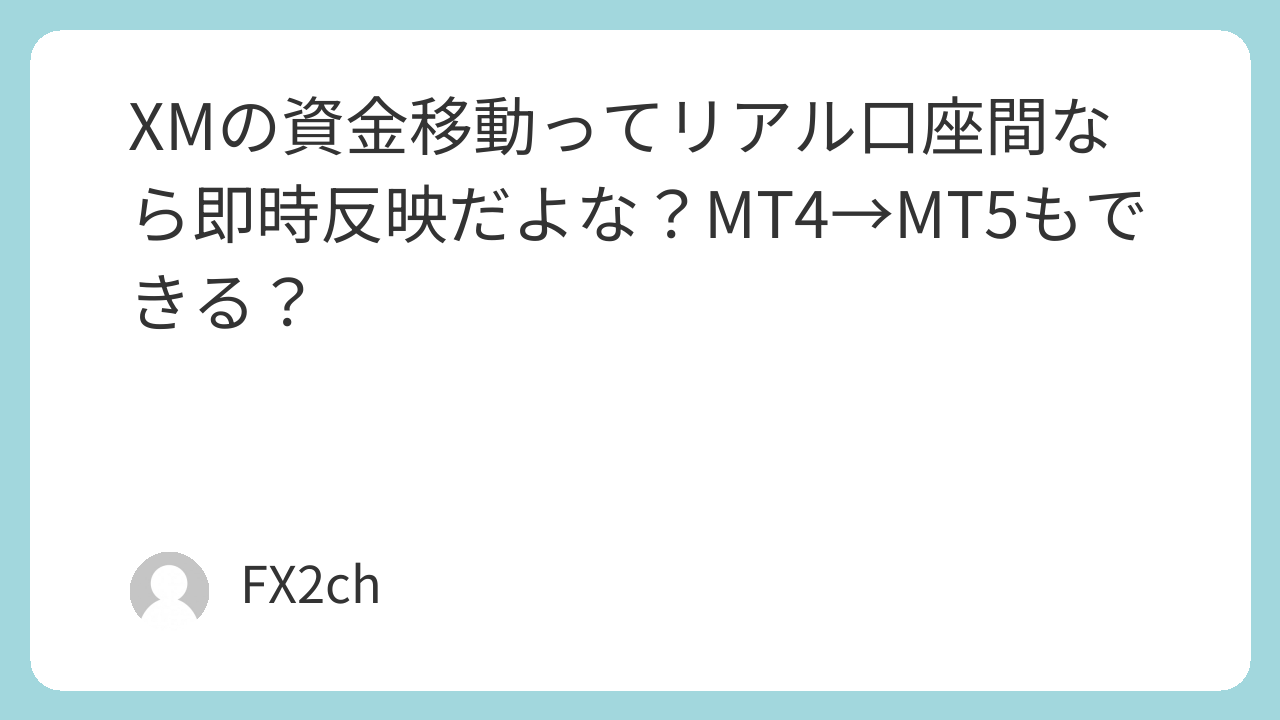 XMの資金移動ってリアル口座間なら即時反映だよな?MT4→MT5もできる?