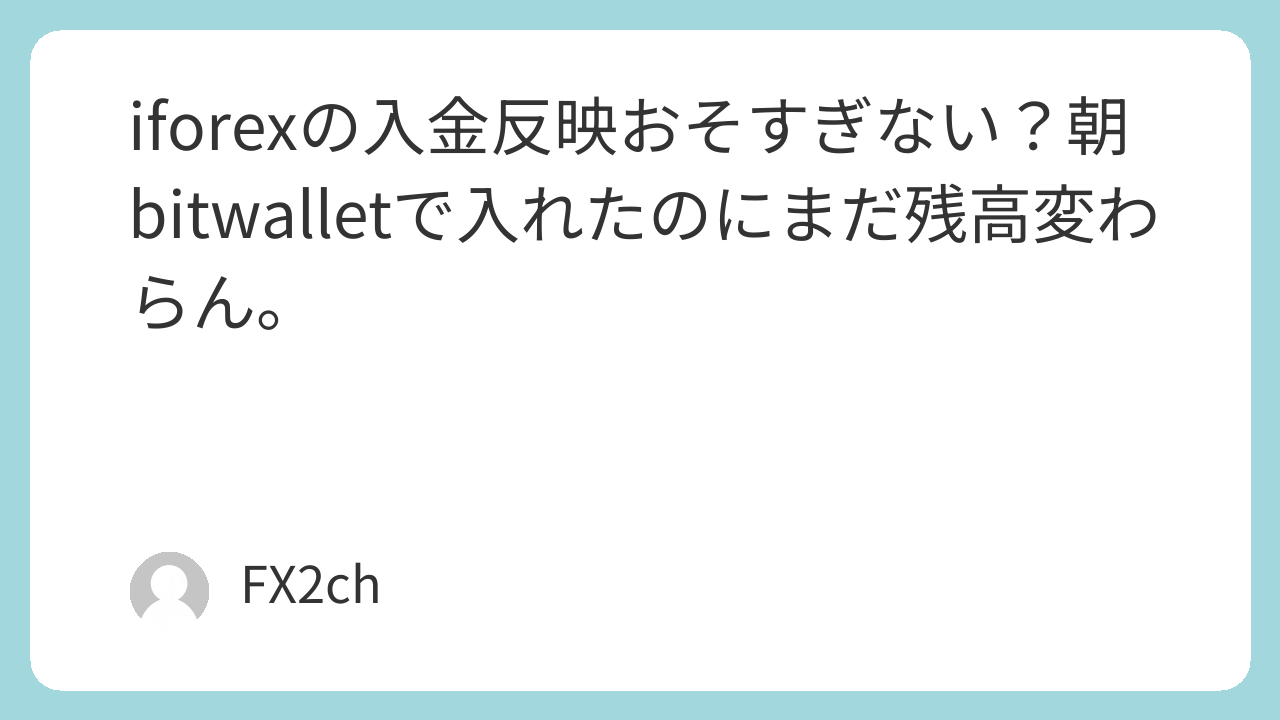 iforexの入金反映おそすぎない?朝bitwalletで入れたのにまだ残高変わらん。