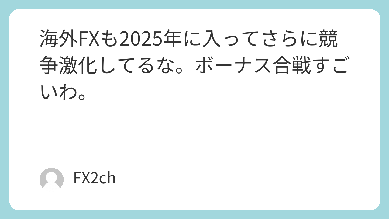 海外FXも2025年に入ってさらに競争激化してるな。ボーナス合戦すごいわ。