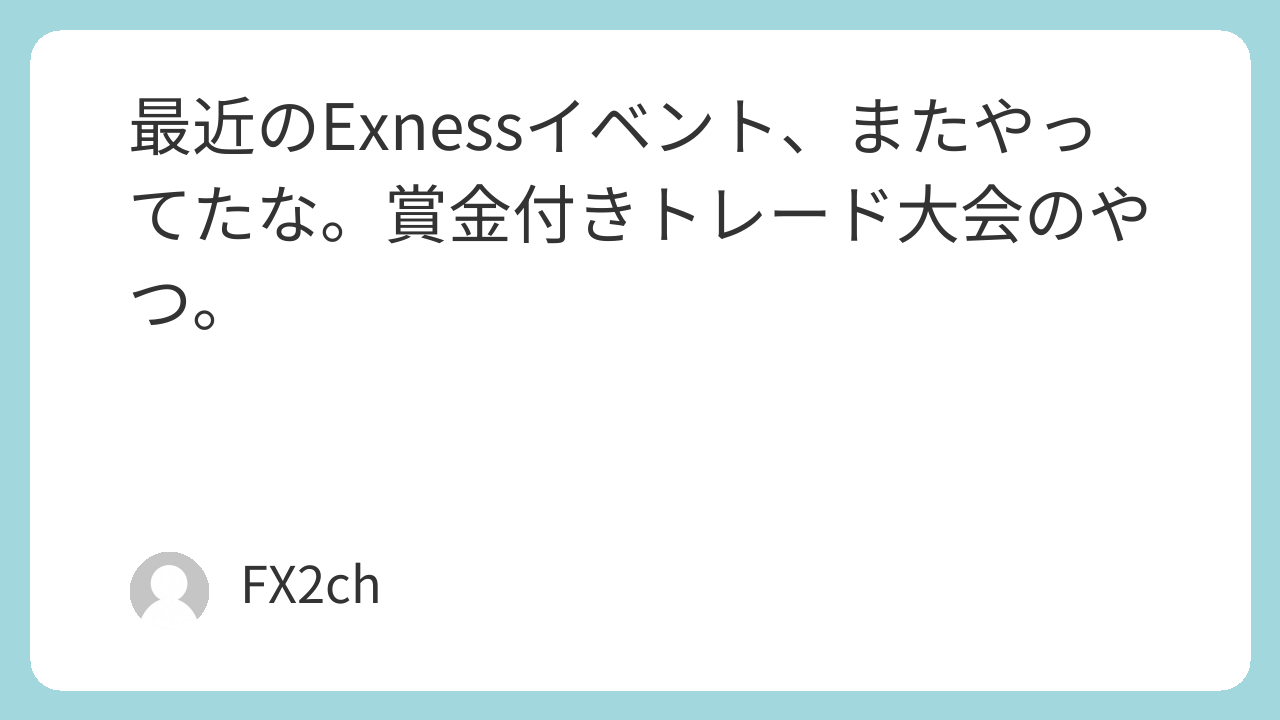 最近のExnessイベント、またやってたな。賞金付きトレード大会のやつ。