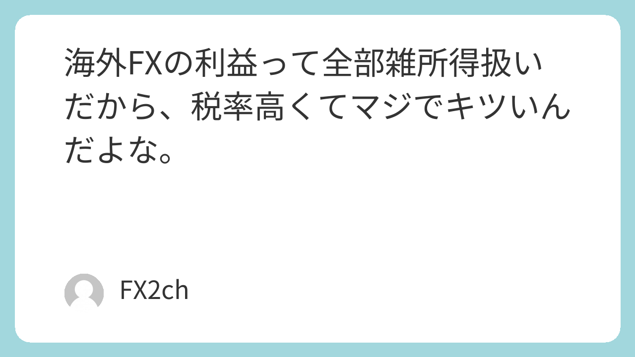 海外FXの利益って全部雑所得扱いだから、税率高くてマジでキツいんだよな。
