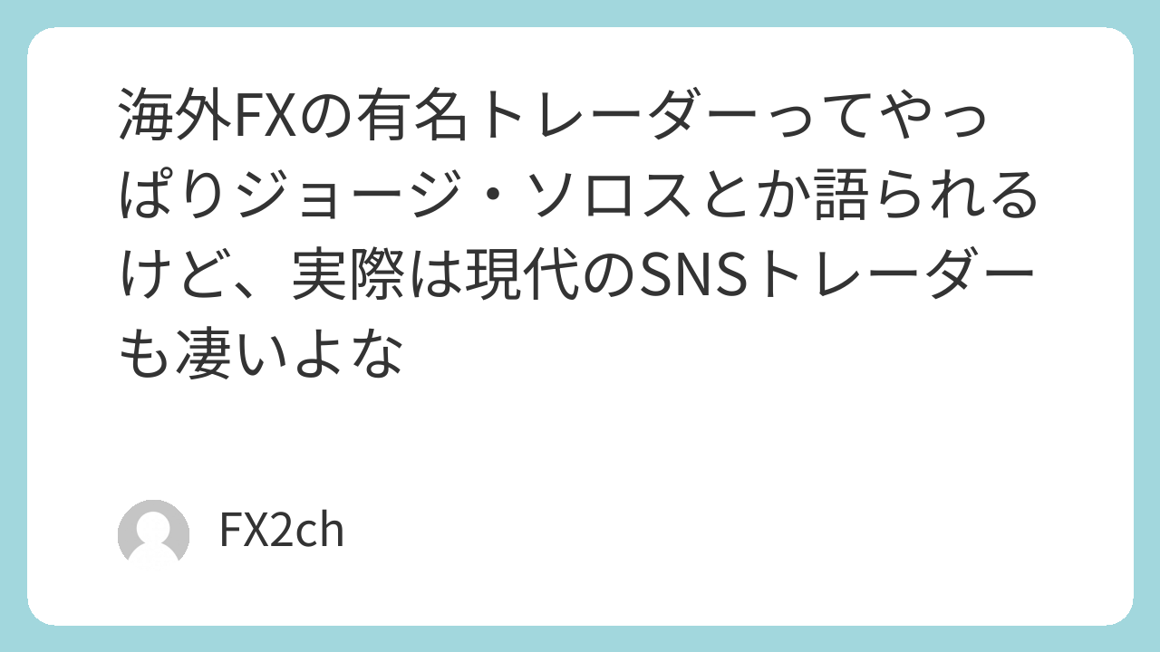 海外FXの有名トレーダーってやっぱりジョージ・ソロスとか語られるけど、実際は現代のSNSトレーダーも凄いよな。