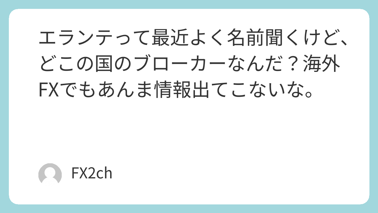 エランテって最近よく名前聞くけど、どこの国のブローカーなんだ?海外FXでもあんま情報出てこないな。