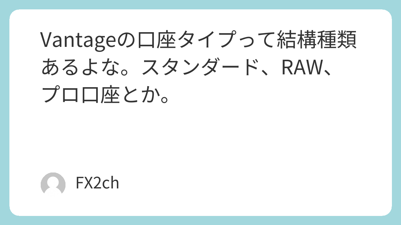 Vantageの口座タイプって結構種類あるよな。スタンダード、RAW、プロ口座とか。