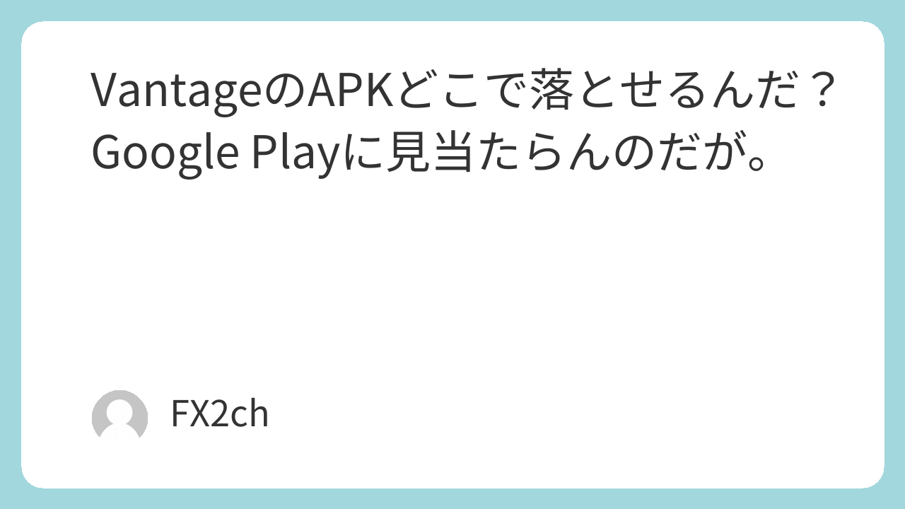 VantageのAPKどこで落とせるんだ?Google Playに見当たらんのだが。