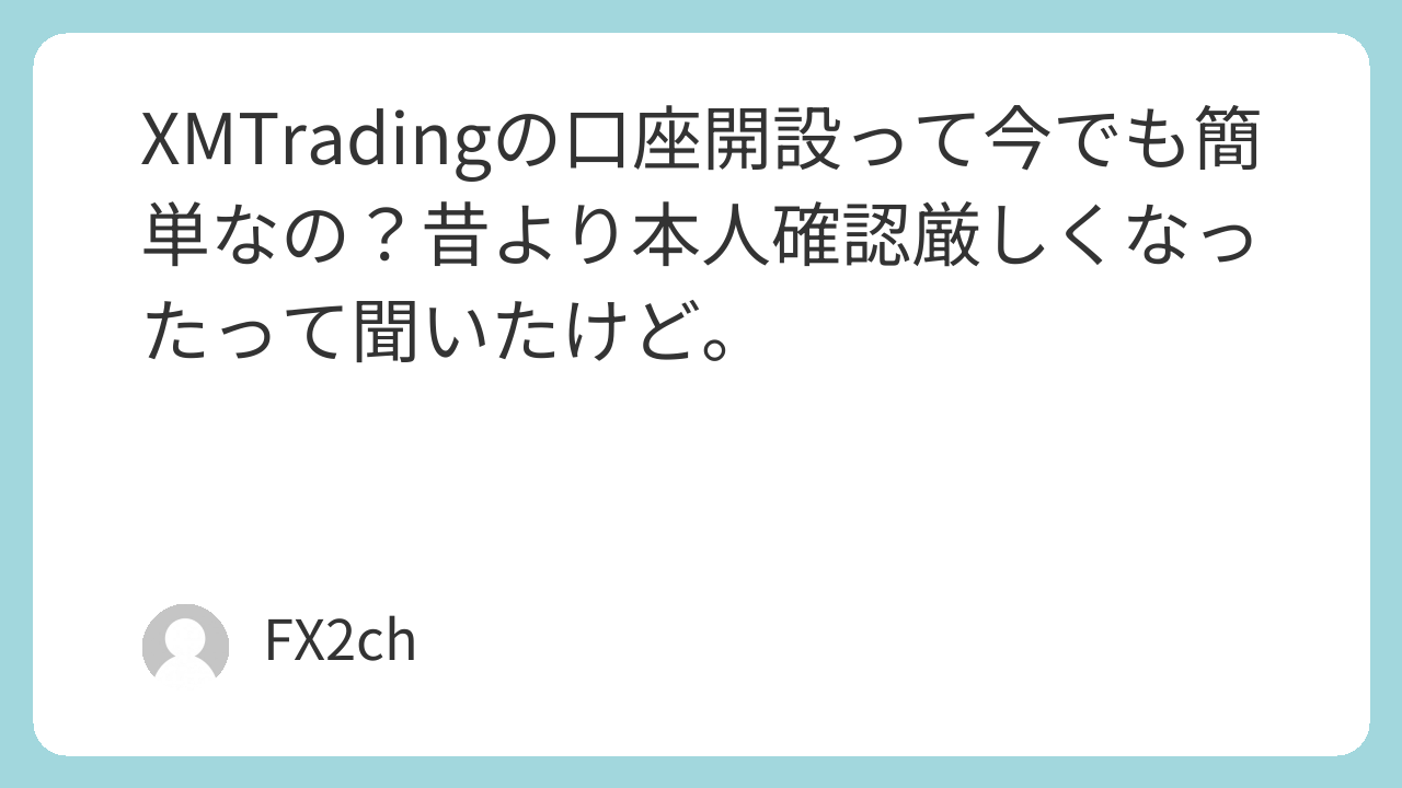 XMTradingの口座開設って今でも簡単なの?昔より本人確認厳しくなったって聞いたけど。
