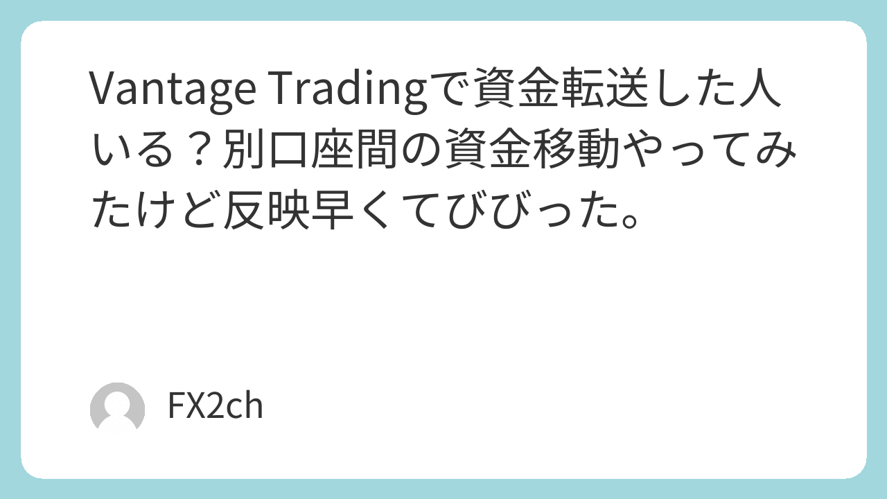 Vantage Tradingで資金転送した人いる?別口座間の資金移動やってみたけど反映早くてびびった。