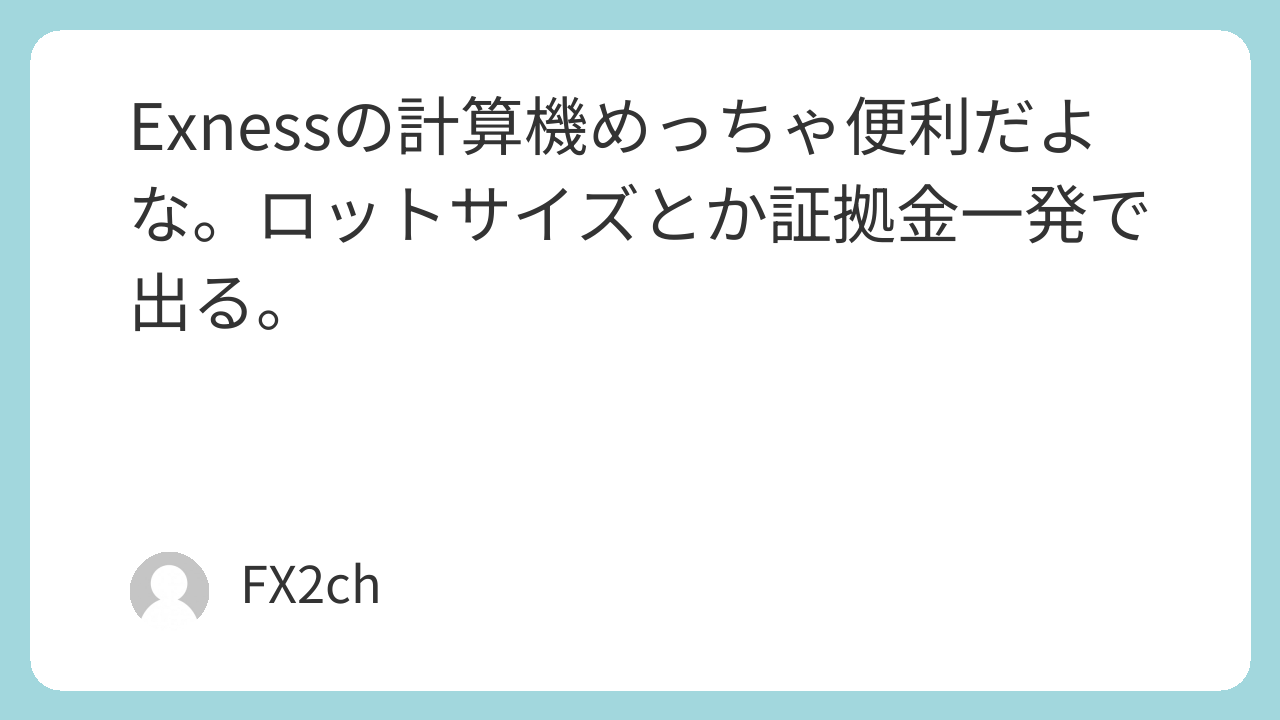 Exnessの計算機めっちゃ便利だよな。ロットサイズとか証拠金一発で出る。
