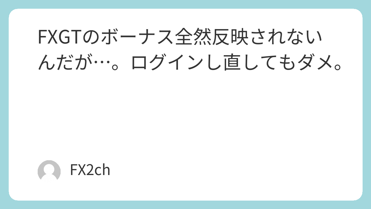 FXGTのボーナス全然反映されないんだが…。ログインし直してもダメ。