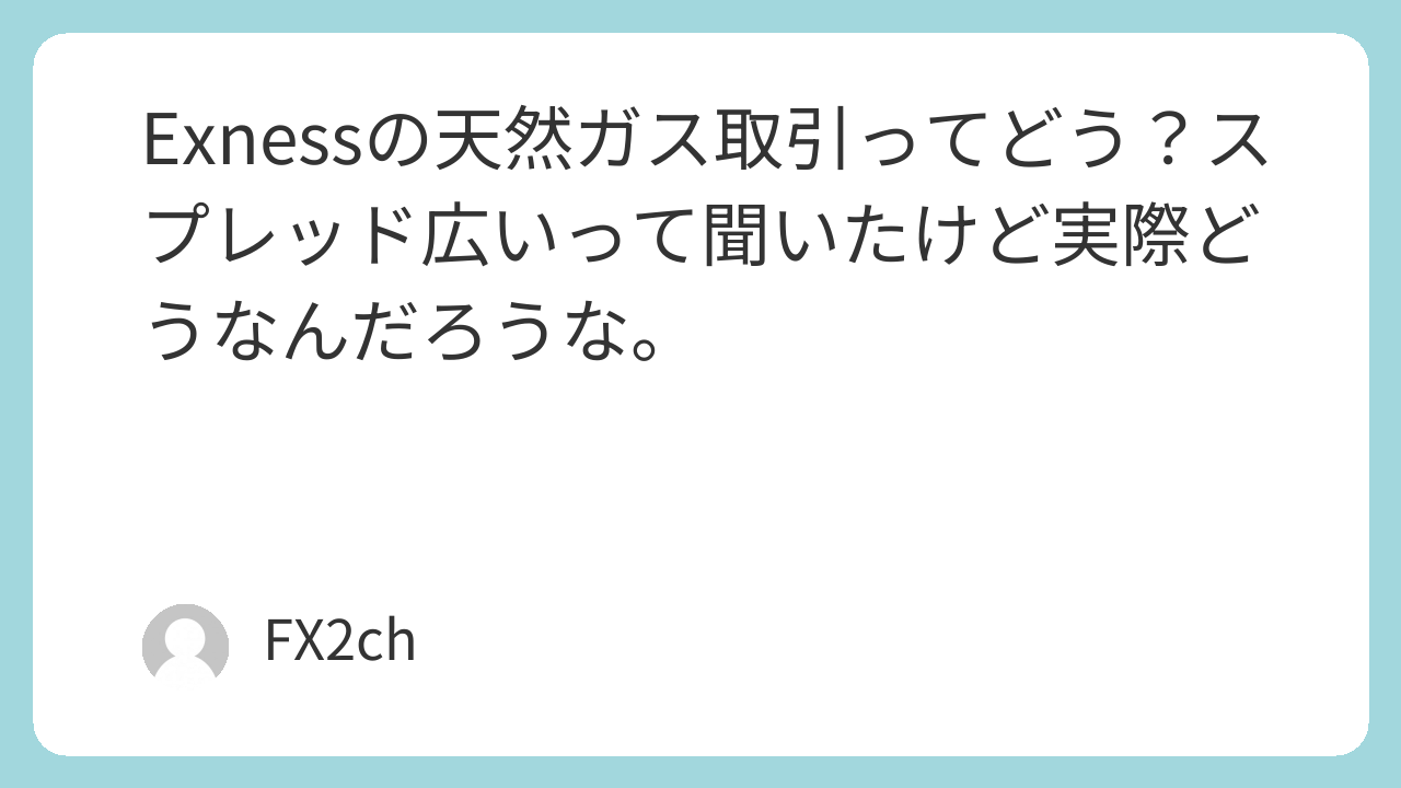 Exnessの天然ガス取引ってどう?スプレッド広いって聞いたけど実際どうなんだろうな。