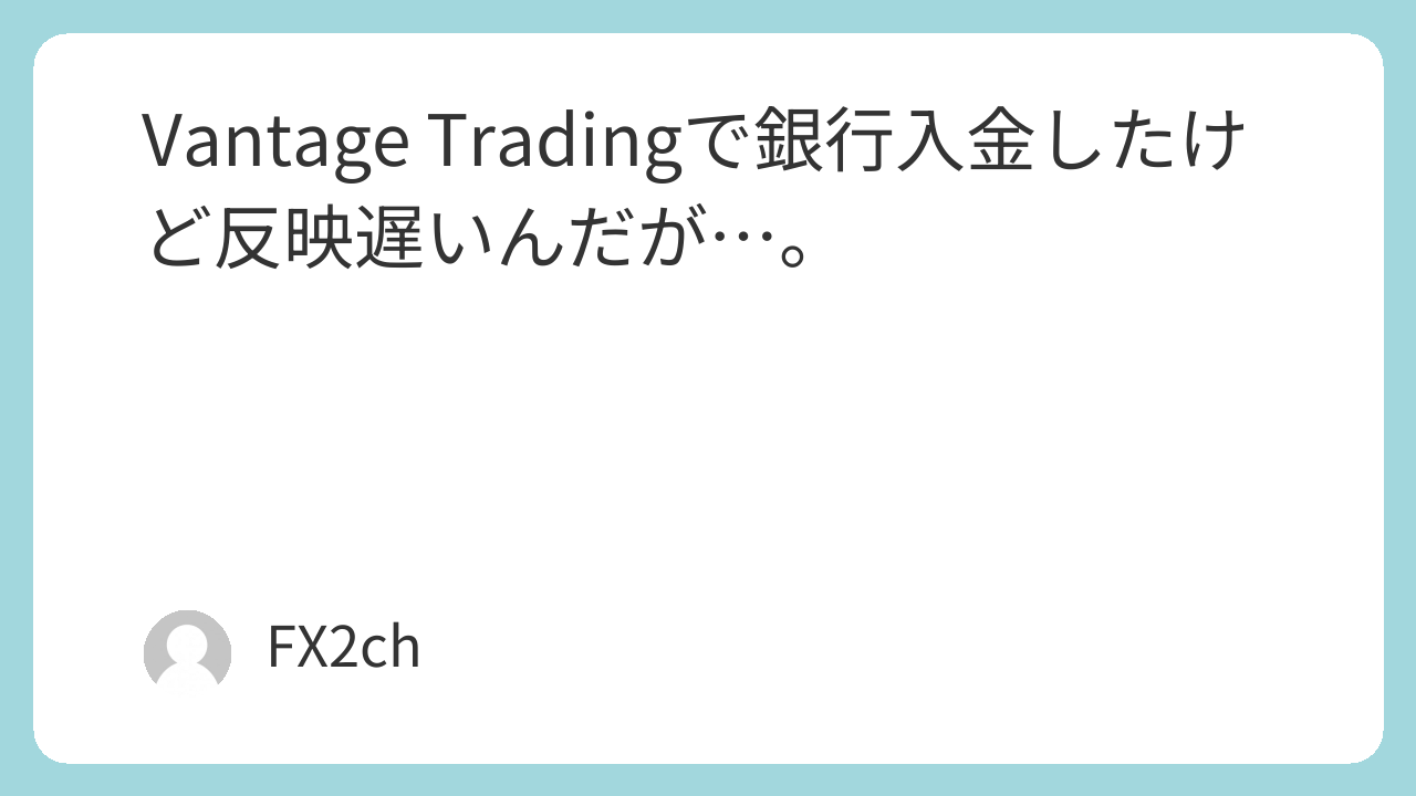Vantage Tradingで銀行入金したけど反映遅いんだが…。