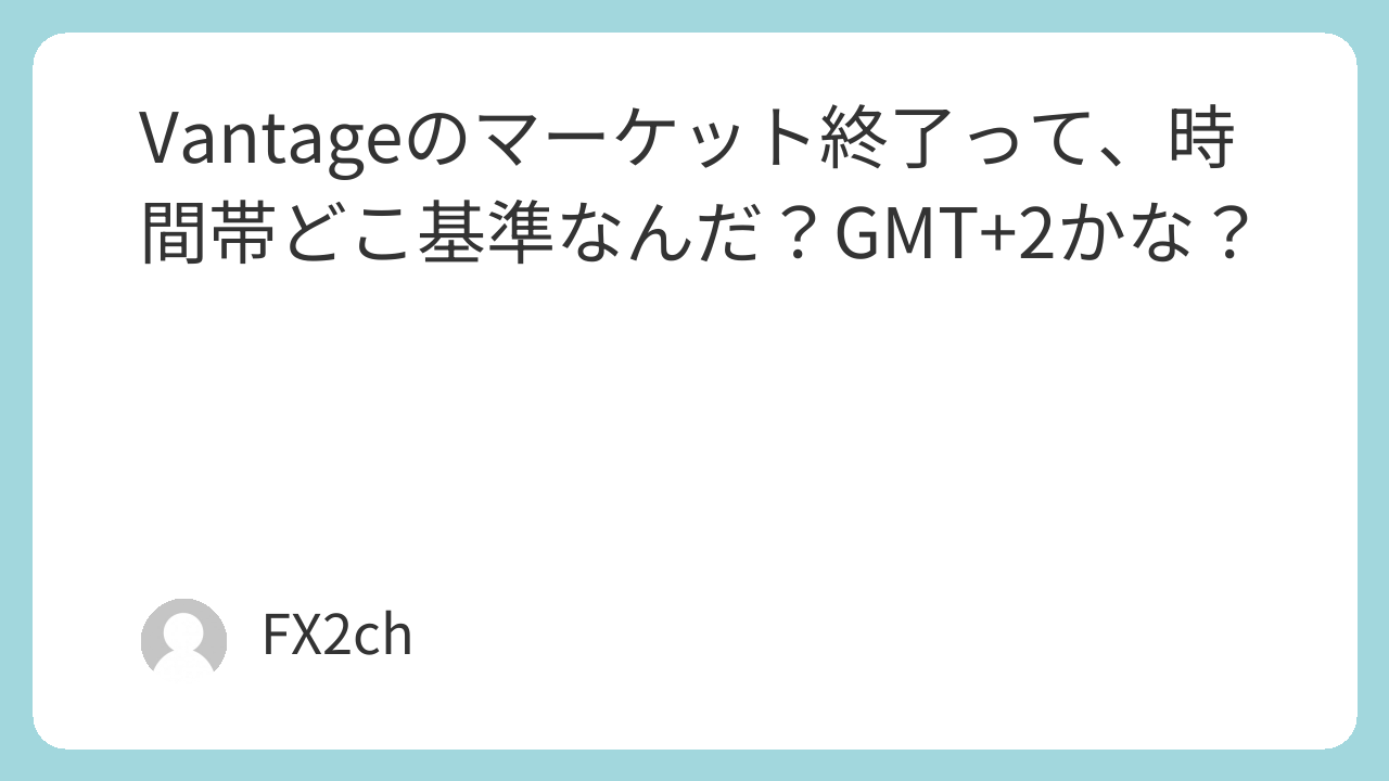 Vantageのマーケット終了って、時間帯どこ基準なんだ?GMT+2かな?