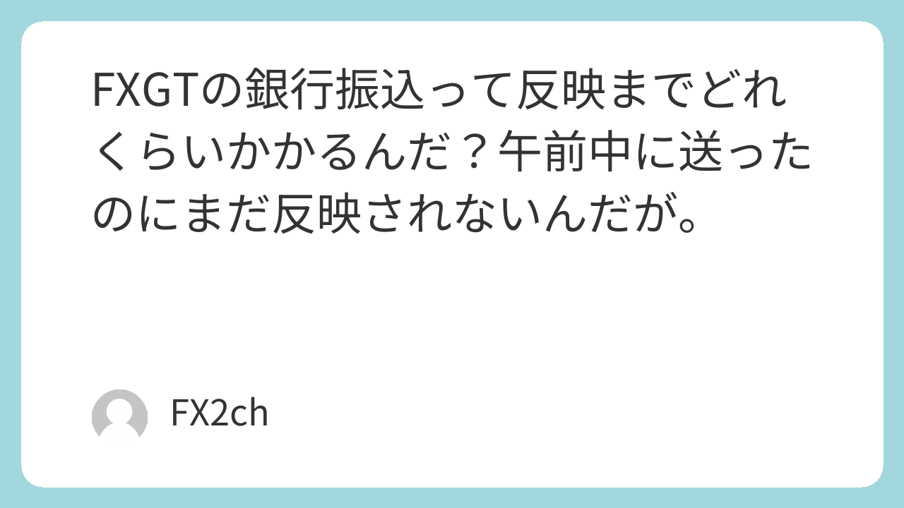 FXGTの銀行振込って反映までどれくらいかかるんだ?午前中に送ったのにまだ反映されないんだが。