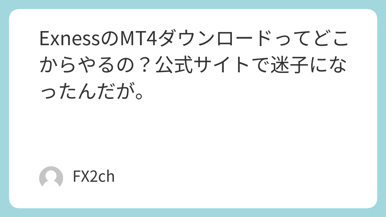MT4のダウンロードページ直リンク貼っとく:https://www.exness.com/ja/metatrader-4/