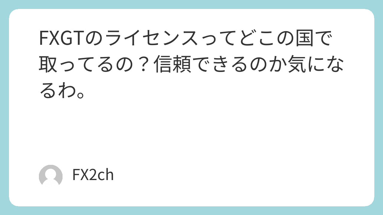 FXGTのライセンスってどこの国で取ってるの?信頼できるのか気になるわ。
