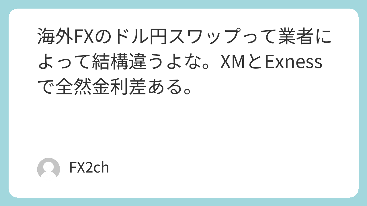 海外FXのドル円スワップって業者によって結構違うよな。XMとExnessで全然金利差ある。
