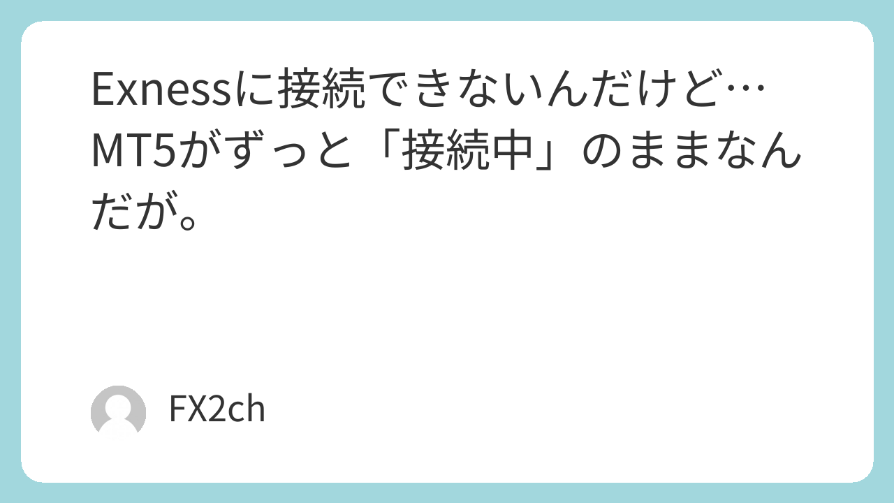 Exnessに接続できないんだけど…MT5がずっと「接続中」のままなんだが。