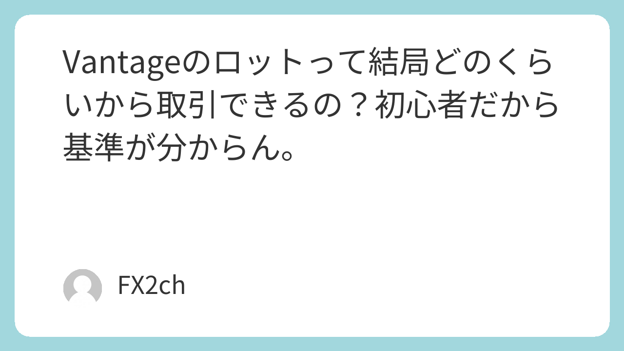 Vantageのロットって結局どのくらいから取引できるの?初心者だから基準が分からん。