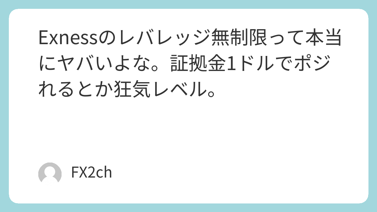 Exnessのレバレッジ無制限って本当にヤバいよな。証拠金1ドルでポジれるとか狂気レベル。