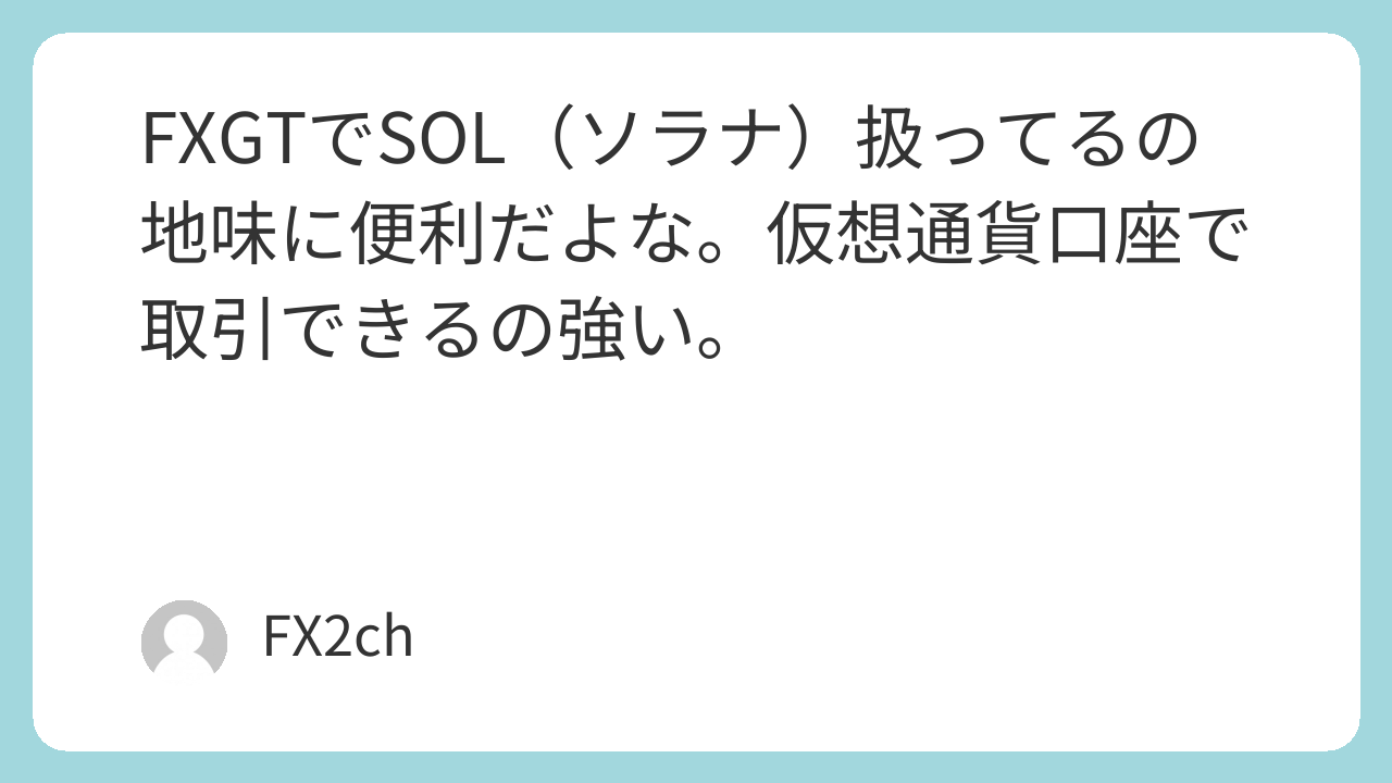 FXGTでSOL(ソラナ)扱ってるの地味に便利だよな。仮想通貨口座で取引できるの強い。