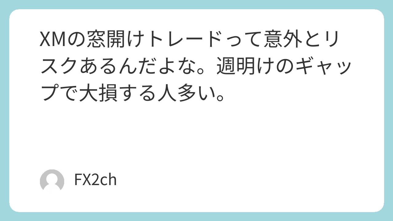 XMの窓開けトレードって意外とリスクあるんだよな。週明けのギャップで大損する人多い。