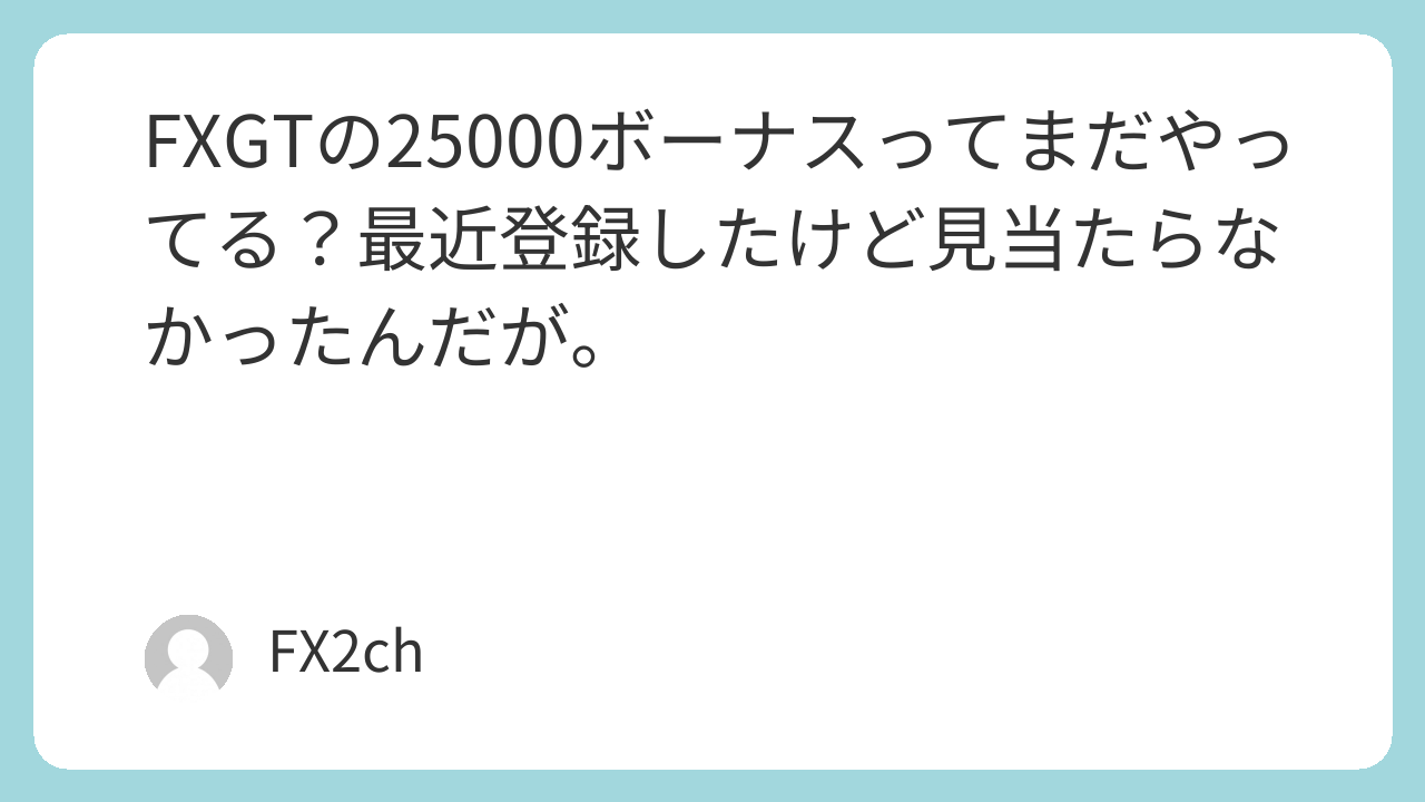 FXGTの25000ボーナスってまだやってる?最近登録したけど見当たらなかったんだが。