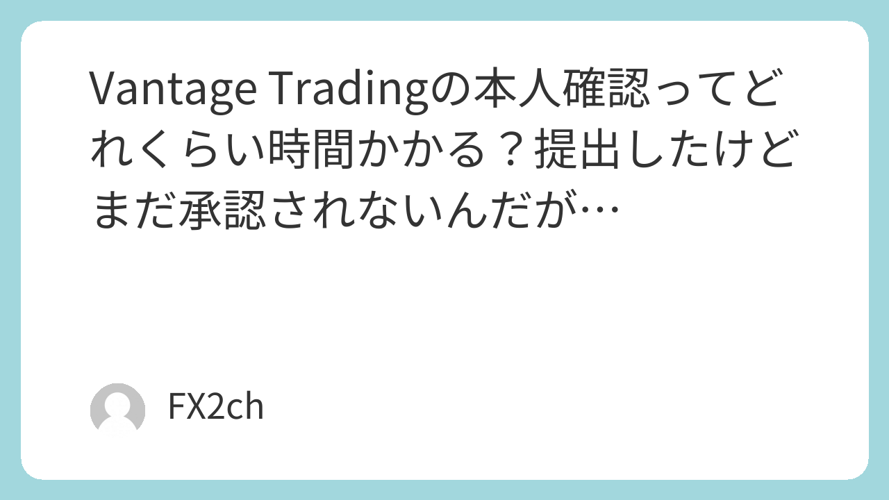 VantageはKYC厳しめだよな。海外FXでもきっちりしてる方。