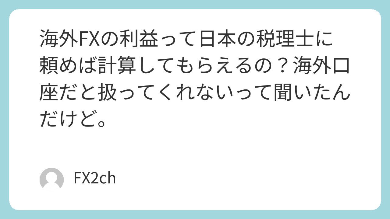 海外FXの利益って日本の税理士に頼めば計算してもらえるの?海外口座だと扱ってくれないって聞いたんだけど。