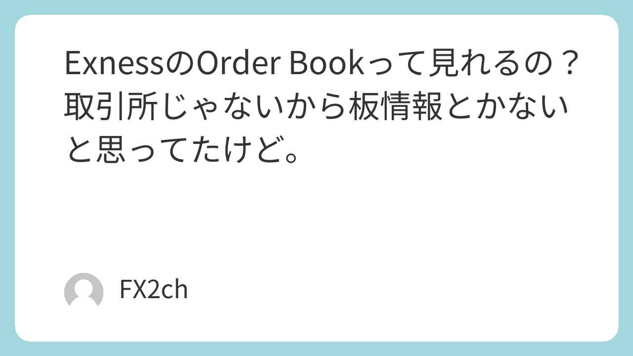 Exnessはデータ提供元が機関LPだから、板表示しても個人の注文は反映されない。