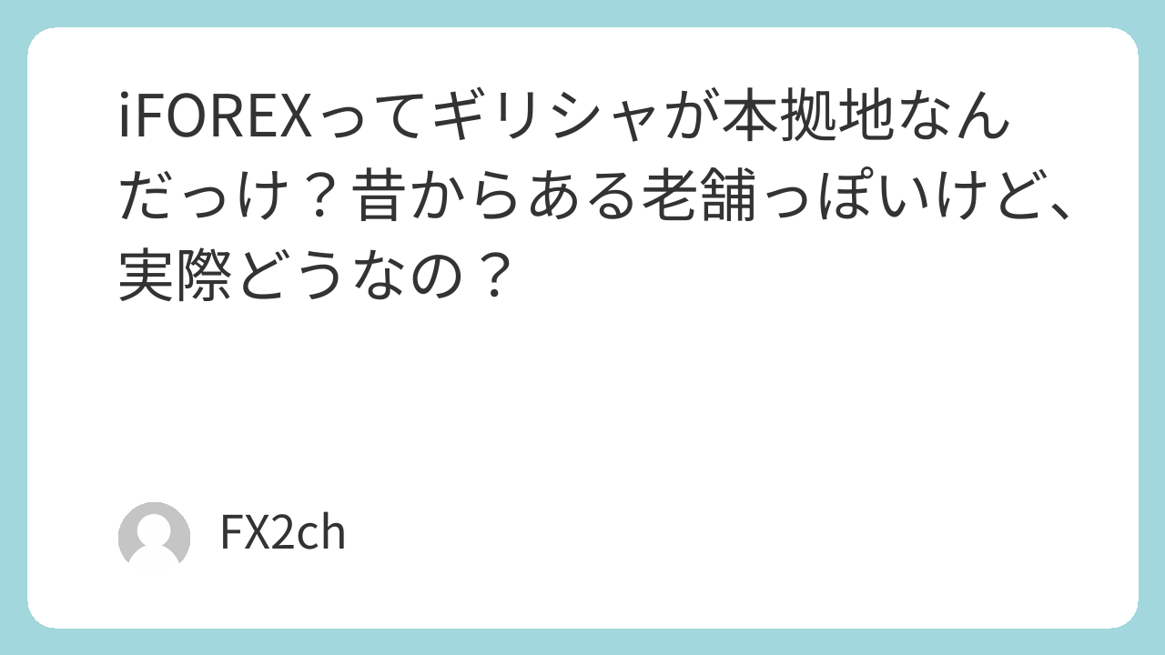 iFOREXってギリシャが本拠地なんだっけ?昔からある老舗っぽいけど、実際どうなの?
