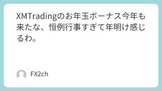 FX XMTradingのお年玉ボーナス今年も来たな、恒例行事すぎて年明け感じるわ。